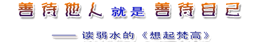 为了所有的生灵都能在有限的时间里享受生命的快乐,包括我们自身的快乐,善待他人吧,其实这也就是善待我们自己。何不试之?□ |